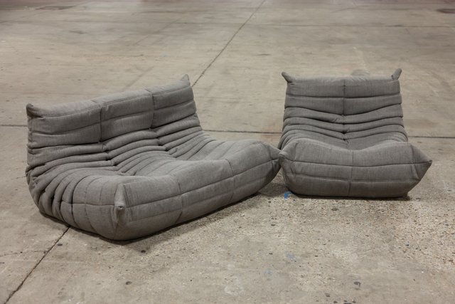 Grey Fabric Togo Sofa Lounge Chair By Michel Ducaroy For Ligne Roset 1970s Set Of 2 For Sale At Pamono