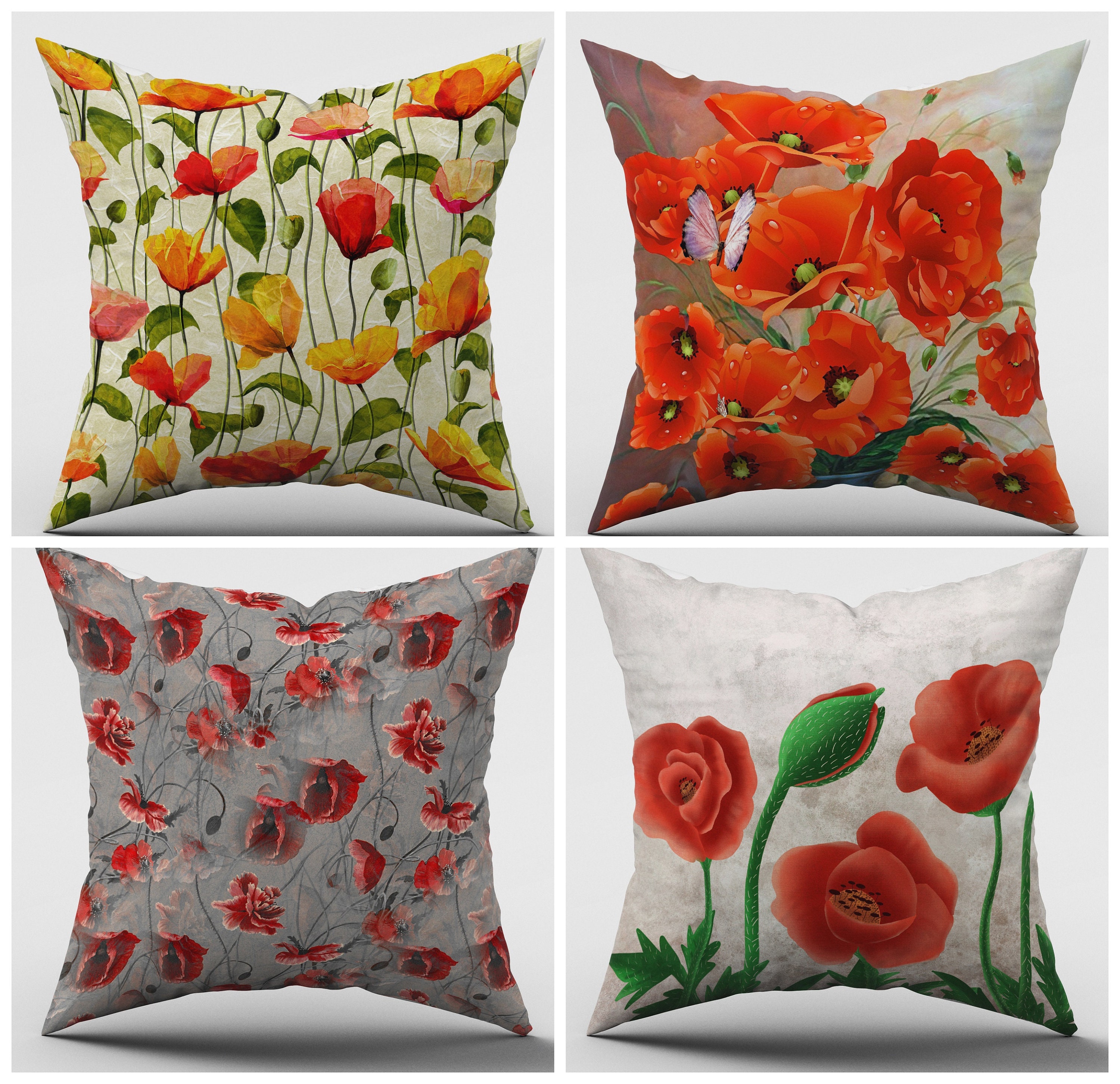 Red Poppy Pillow Coverpoppy Decorpoppy Throw Pillowred Etsy