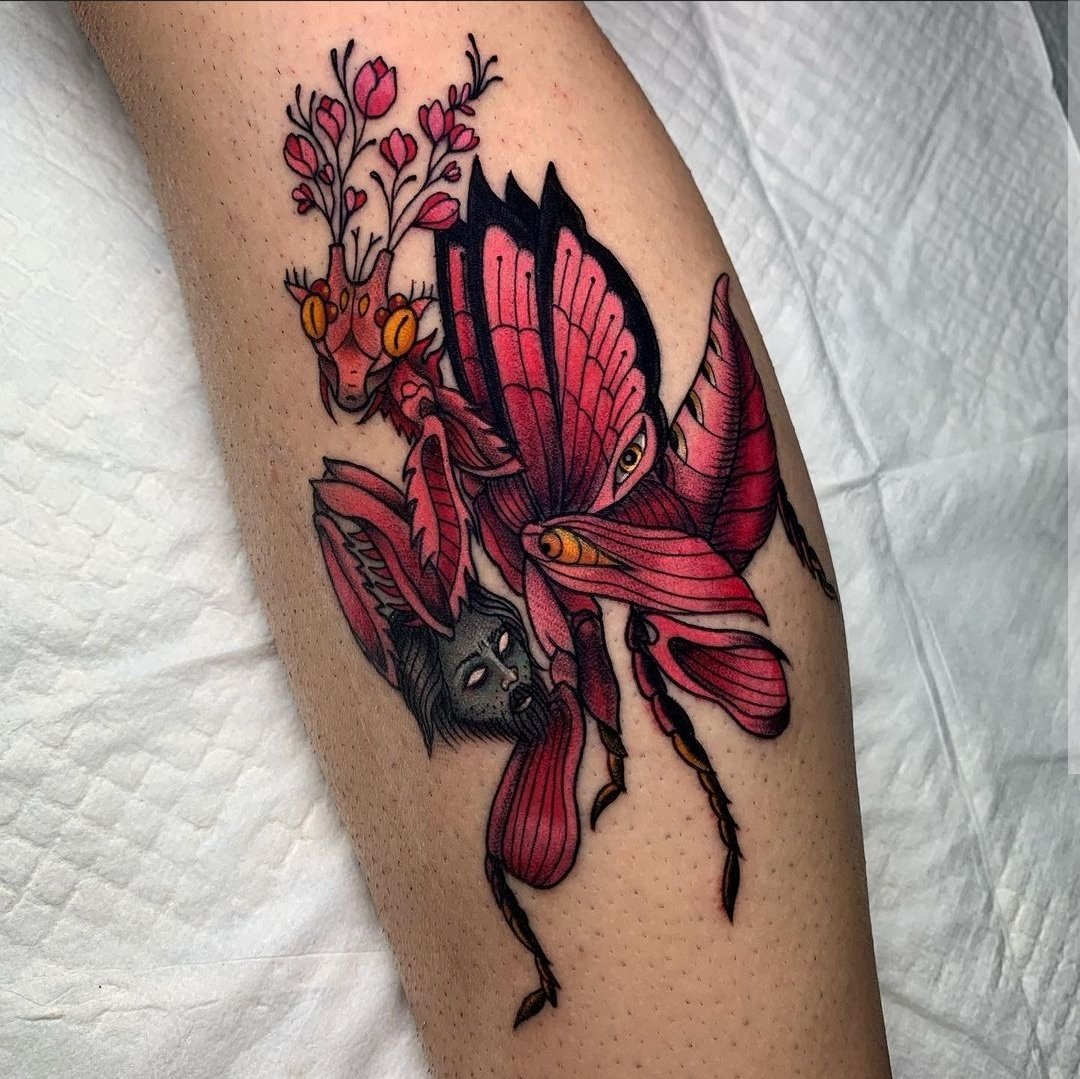 Got A Good Start On This Really Fun Orchid Mantis On Lauren Can T Wait For Color Artist Challenjer Tattoos New School Tattoo Geometric Tattoo